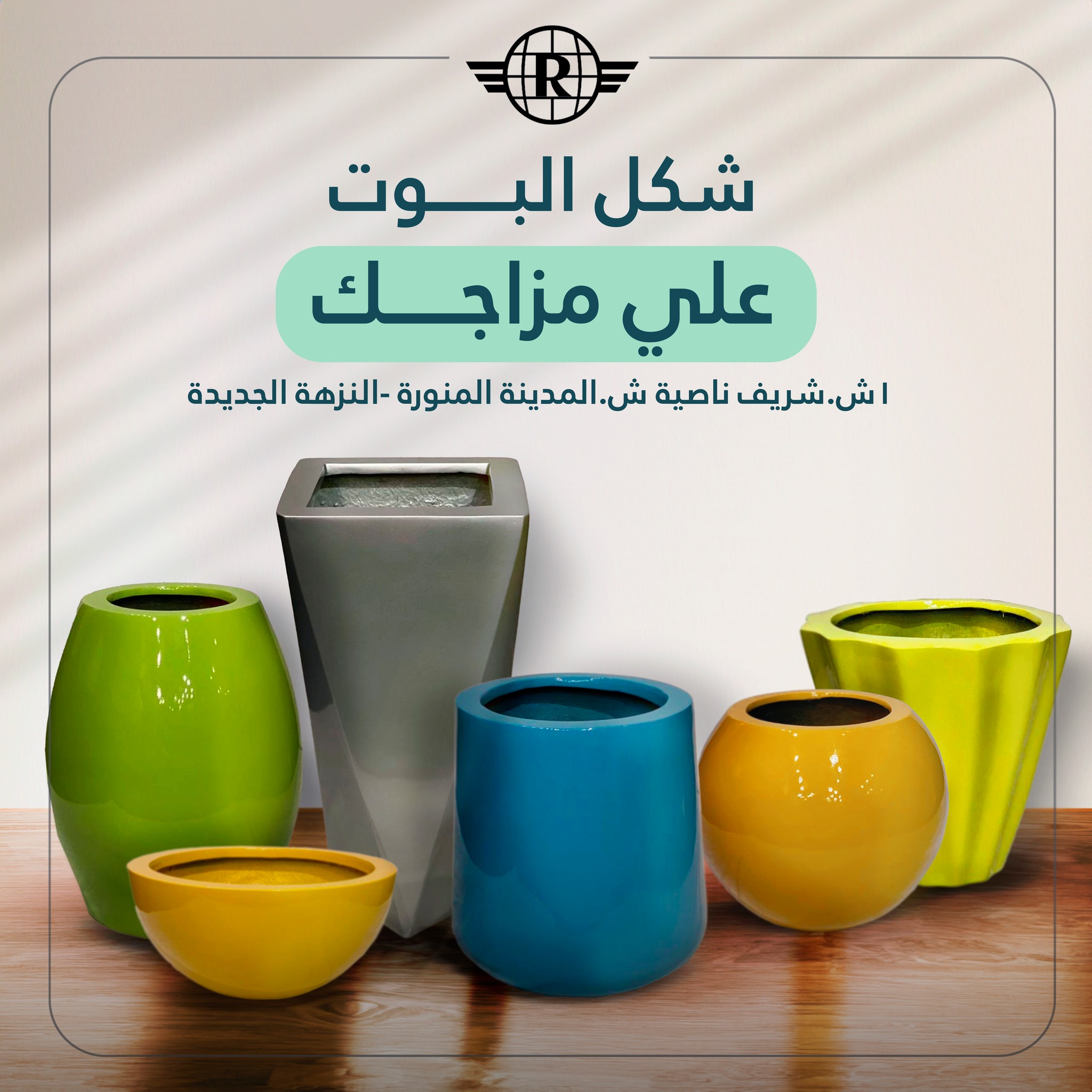 بوتات فايبر وخشب واكليرك وخزف وبلاستيك وبولي ايثلين